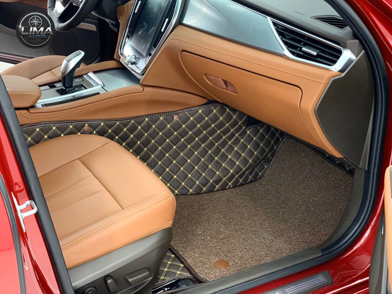 - Đặc điểm: Thảm được cắt may theo khuôn mẫu xe, bao phủ toàn bộ sàn và thành xe (tạo form 5D), thường làm từ da PU hoặc Da Simili cao cấp. Thảm 6D có thêm lớp thảm rối (lưới sợi) trên bề mặt thảm da.